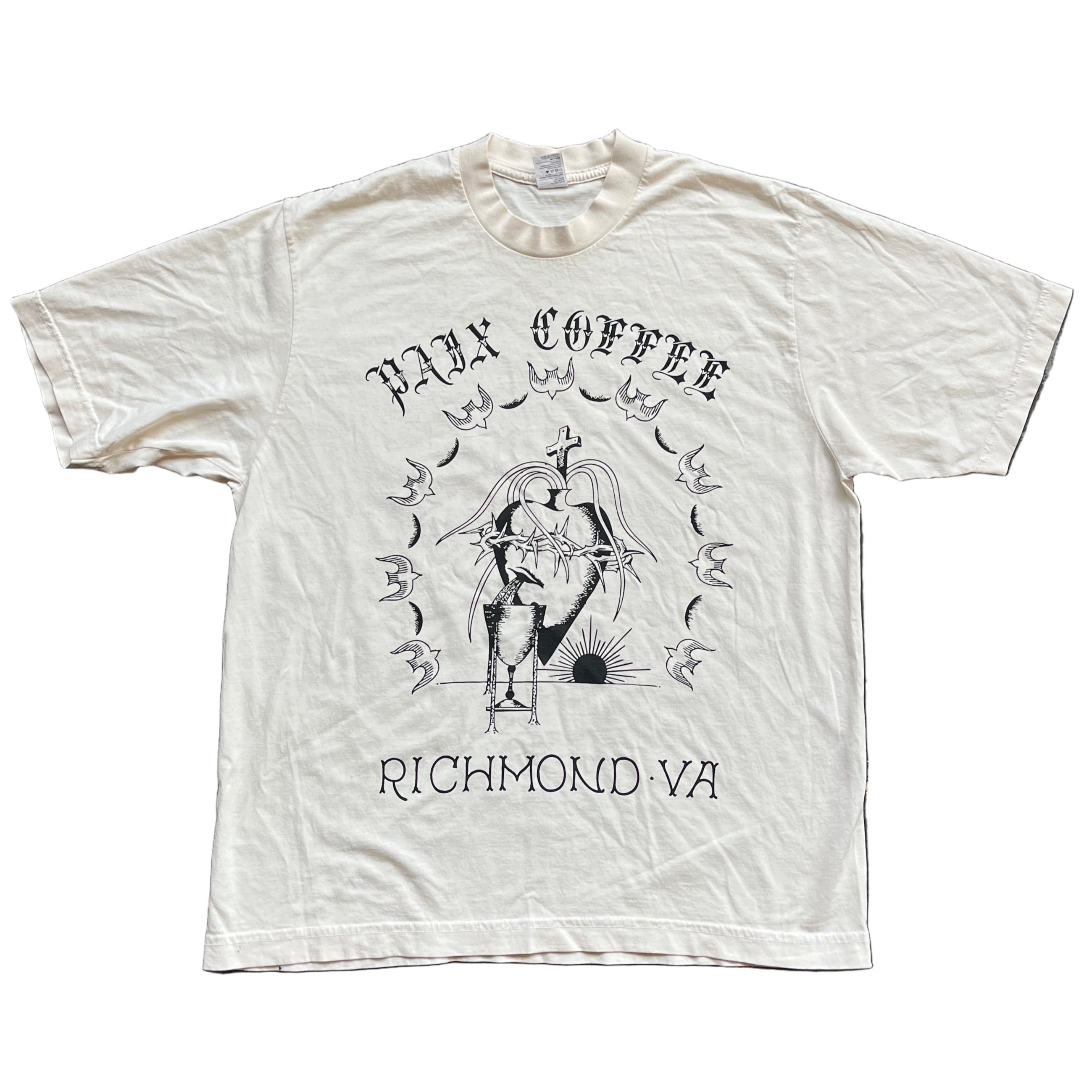 Introducing the Paix Coffee t-shirt - a supima cotton tee, embodying exceptional quality that stands the test of time. Proudly made in the USA, it features a sacred heart graphic that we feel inspires us. Don’t miss out on this piece as it won’t last very long!